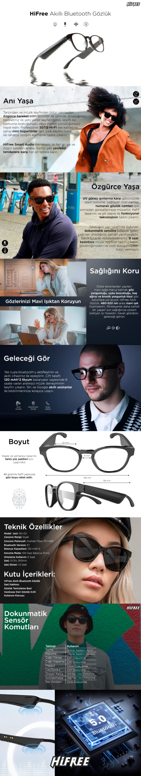 HiFree Akıllı Gözlük Siyah